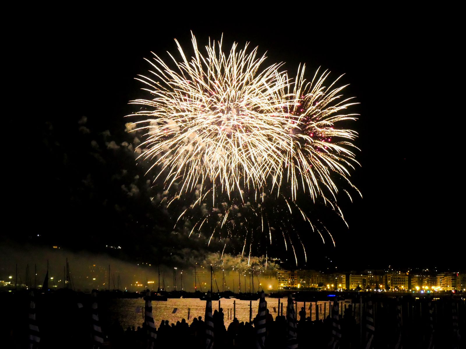 Download 1600x1200 salute, fireworks, sky, dark wallpaper, background standard 4:3