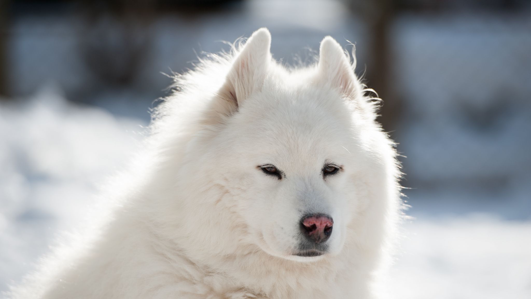 Download 2048x1152 samoyed, dog, pet, fluffy, white wallpaper, background ultrawide monitor