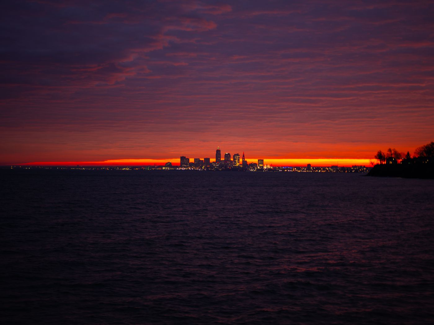 Download 1400x1050 sea, city, lights, buildings, dark wallpaper, background standard 4:3
