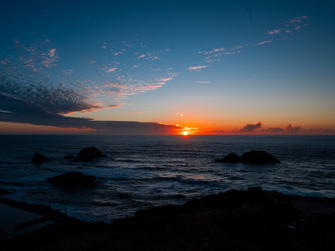 Download 1152x864 sea, horizon, sun, sunset, clouds, landscape, dark wallpaper, background standard 4:3