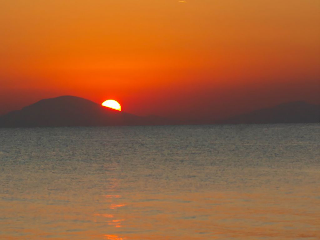Download 1024x768 sea, sunset, mountains, sky, nature, dark wallpaper, background standard 4:3