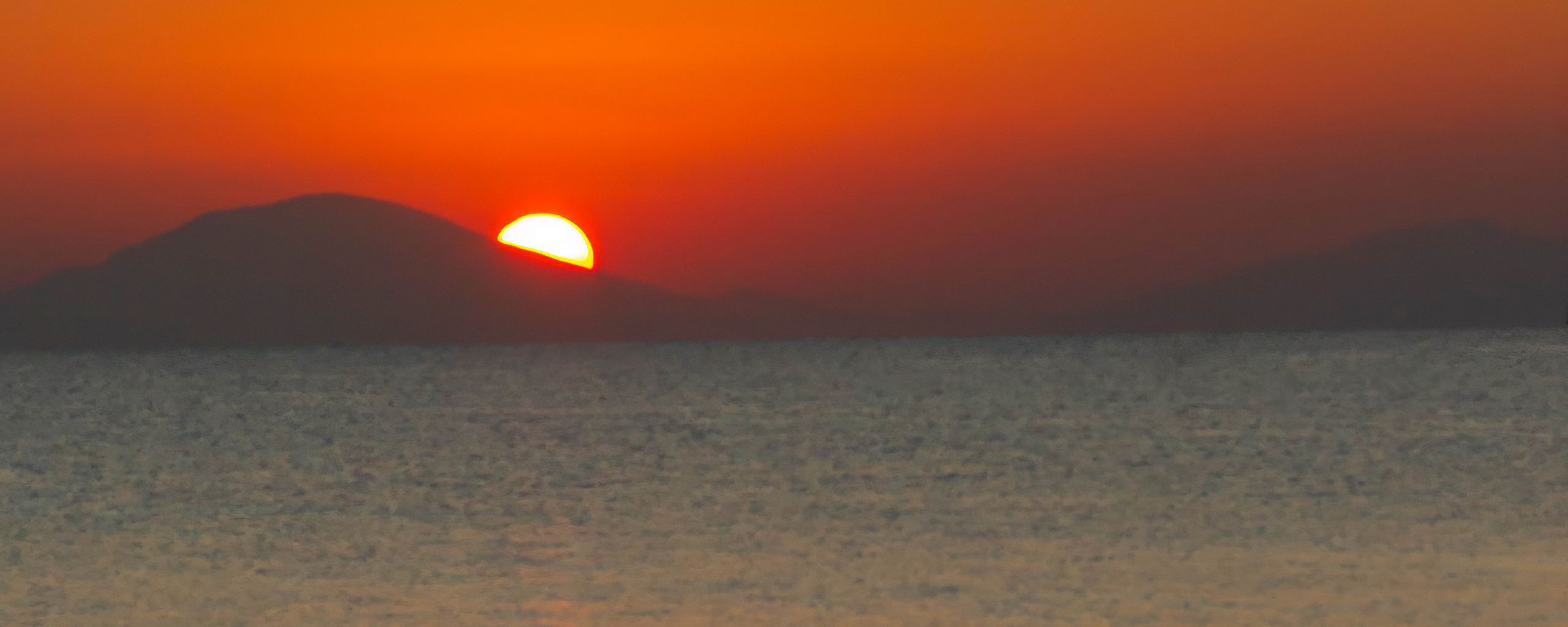 Download 2560x1024 sea, sunset, mountains, sky, nature, dark wallpaper, background ultrawide monitor