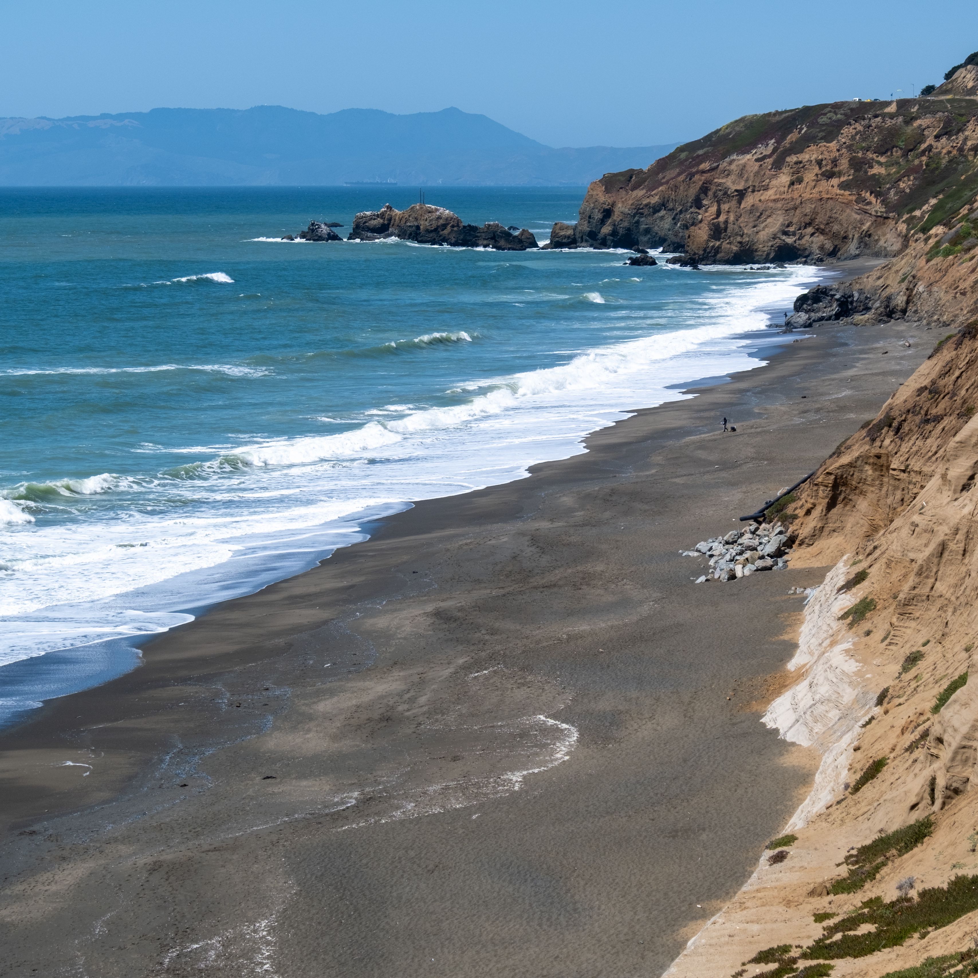 Download 3415x3415 sea, waves, mountain, beach, landscape wallpaper, background ipad pro 12.9" retina for parallax