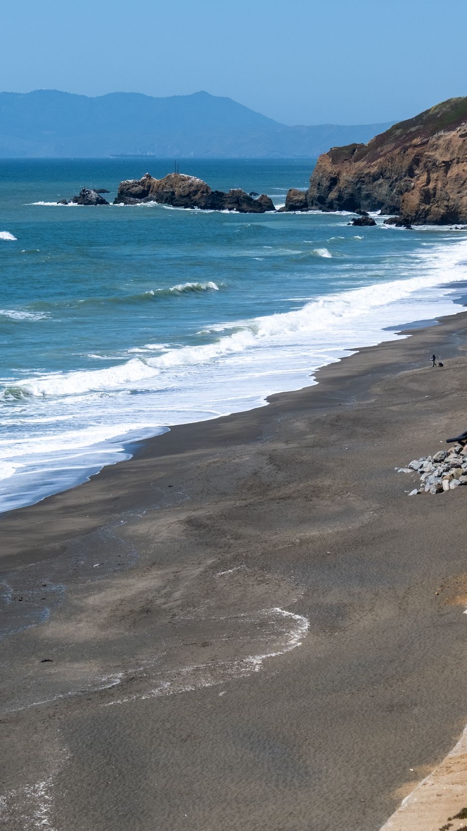 Download 938x1668 sea, waves, mountain, beach, landscape wallpaper, background iphone 8/7/6s/6 for parallax