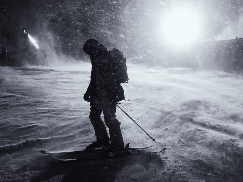 Download 800x600 silhouette, skier, skiing, snow, night wallpaper, background pocket pc, pda
