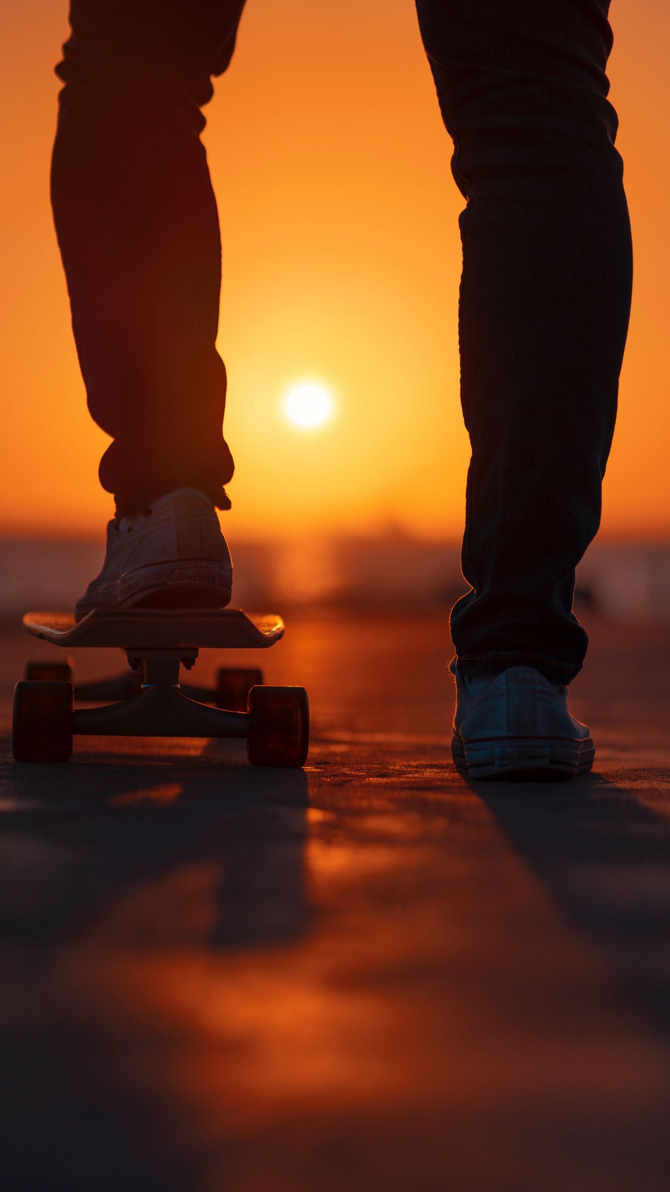 Download 1350x2400 skateboard, legs, sunset, light wallpaper, background iphone 8+/7+/6s+/6+ for parallax