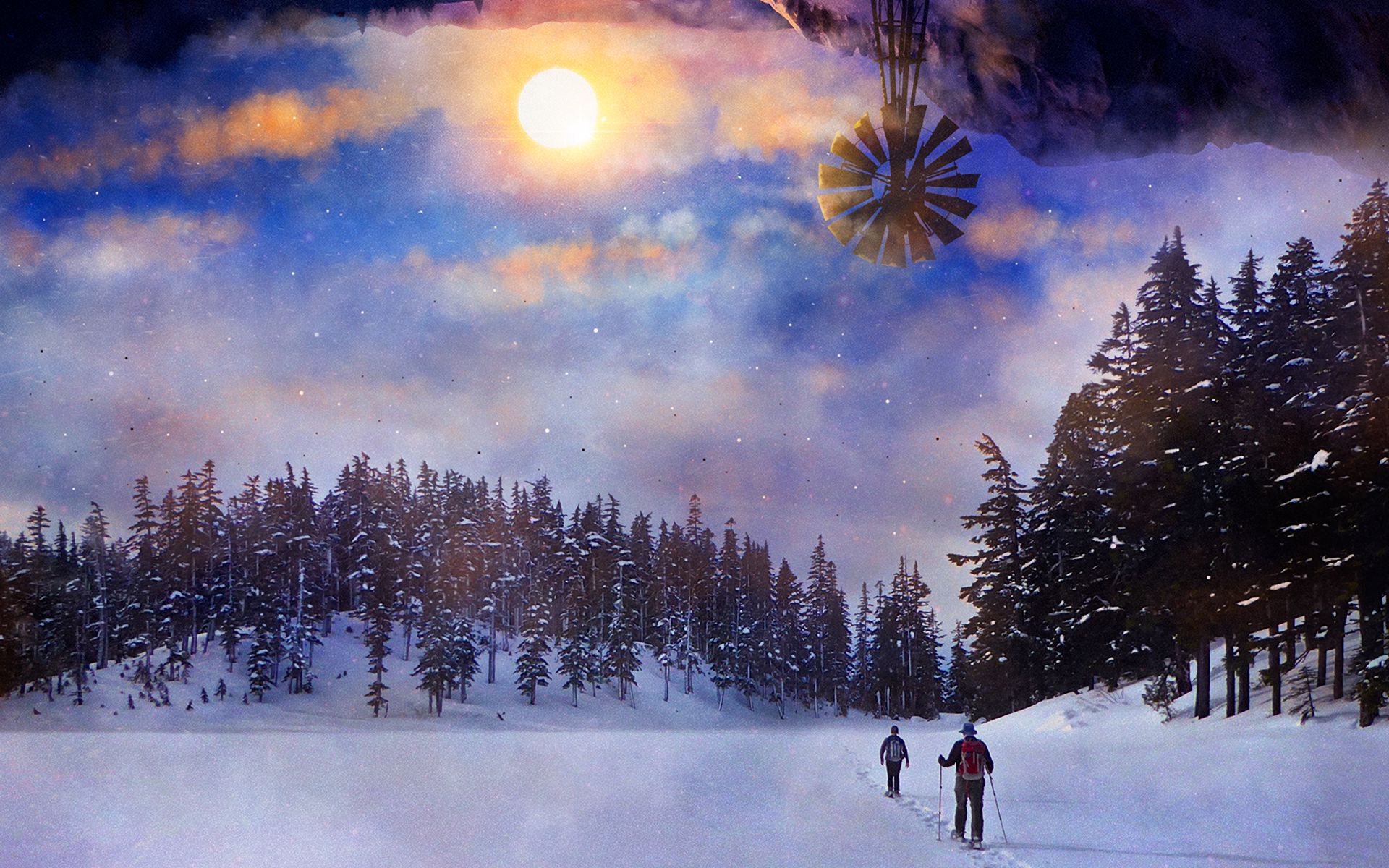Download 1920x1200 skiing, forest, sun, landscape wallpaper, background widescreen 16:10