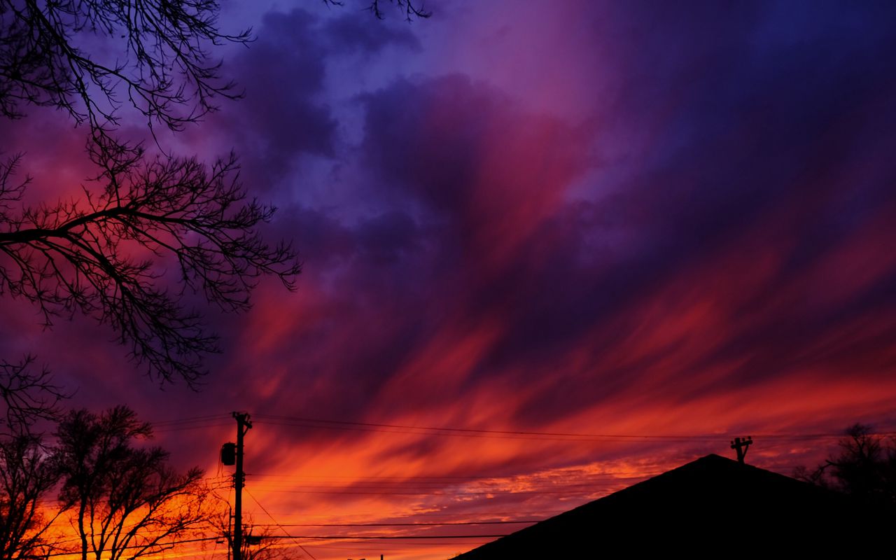 Download 1280x800 sky, roof of house, pole, wires, trees, bright wallpaper, background widescreen 16:10