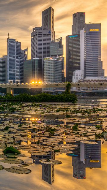 Download 360x640 skyscrapers, architecture, buildings, city, reflection, water lily wallpaper, background nokia n8, c5, c6, c7, e7, x6 nokia 5800, 5230, 5228, sony ericsson vivaz