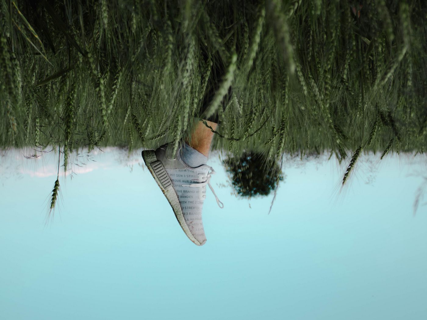 Download 1400x1050 sneakers, legs, grass, field, sky wallpaper, background standard 4:3