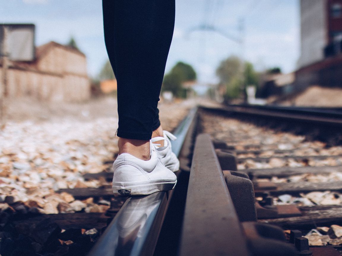 Download 1152x864 sneakers, legs, railway wallpaper, background standard 4:3
