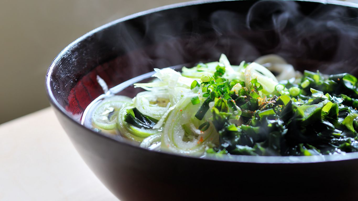 Download 1366x768 soup, greens, steam, hot, asia, food wallpaper, background tablet, laptop