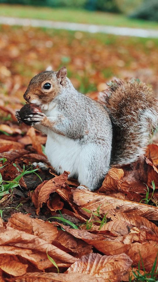 Download 540x960 squirrel, rodent, animal, nut, foliage wallpaper, background samsung galaxy s4 mini, microsoft lumia 535, philips xenium, lg l90, htc sensation
