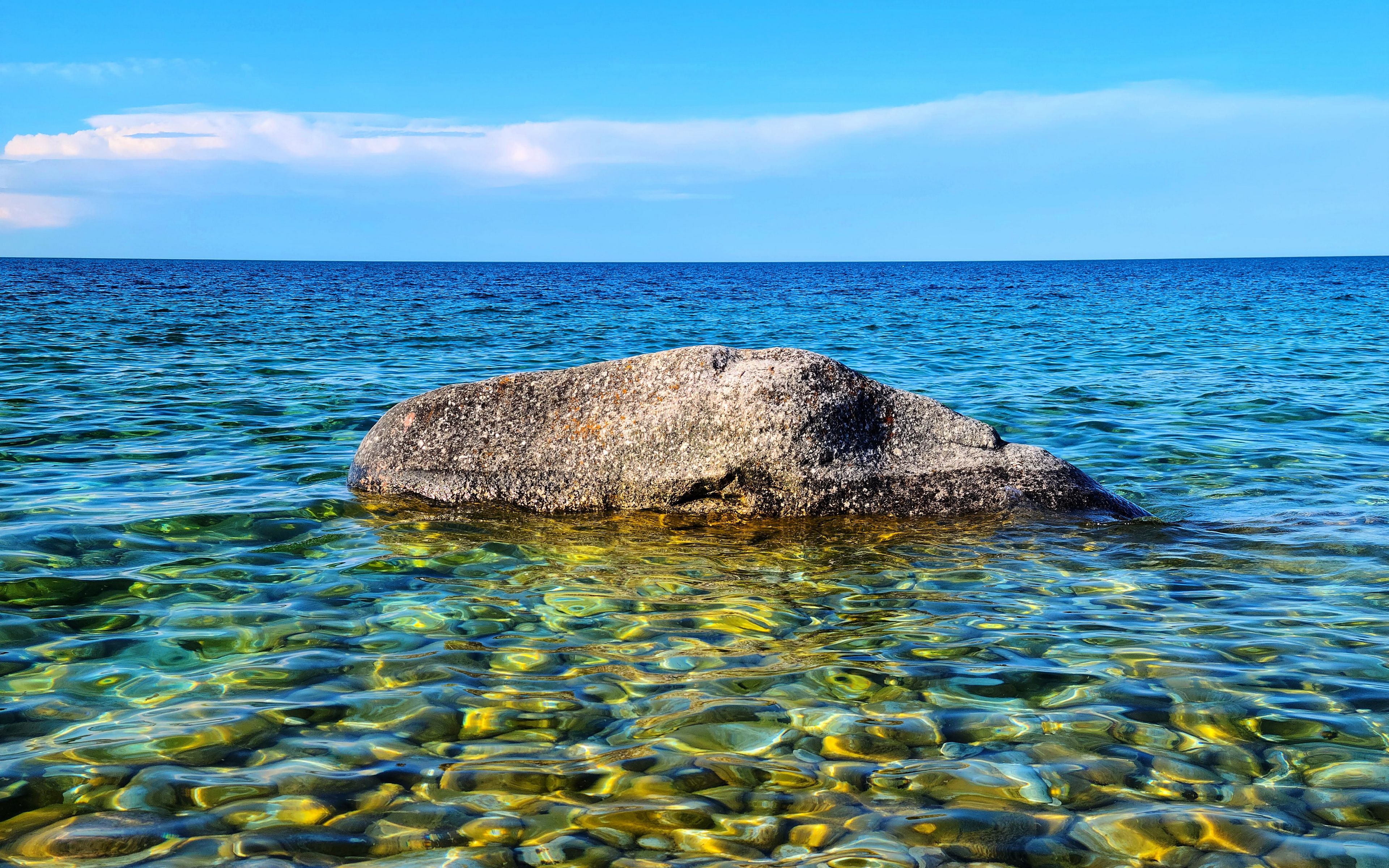 Download 3840x2400 stone, water, pebbles, horizon wallpaper, background 4k ultra hd 16:10