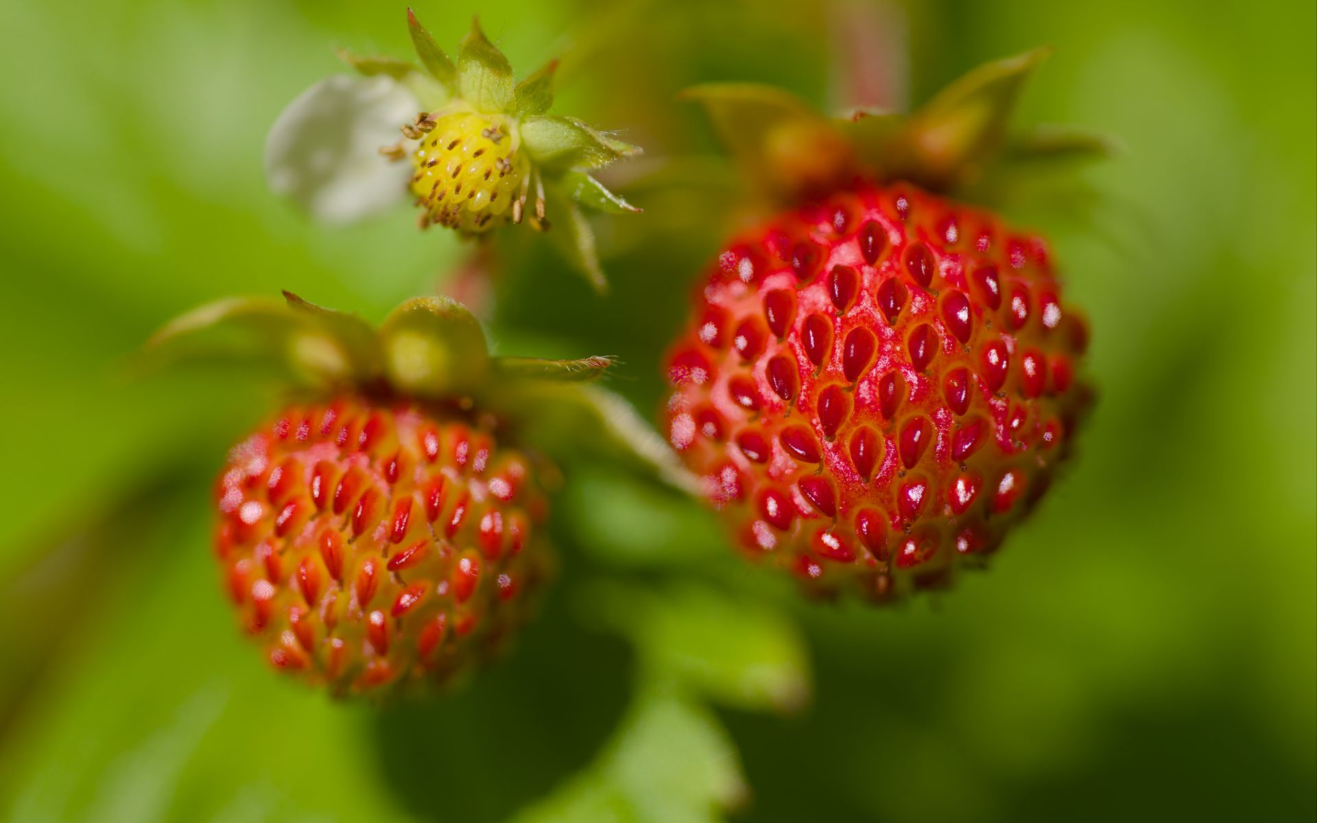 Download 1920x1200 strawberries, berries, leaves, plants, macro wallpaper, background widescreen 16:10