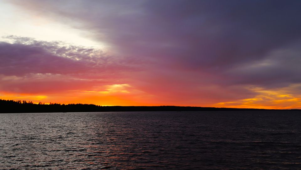 Download 960x544 sunset, sky, clouds, horizon, lake, water, landscape, nature wallpaper, background playstation ps vita