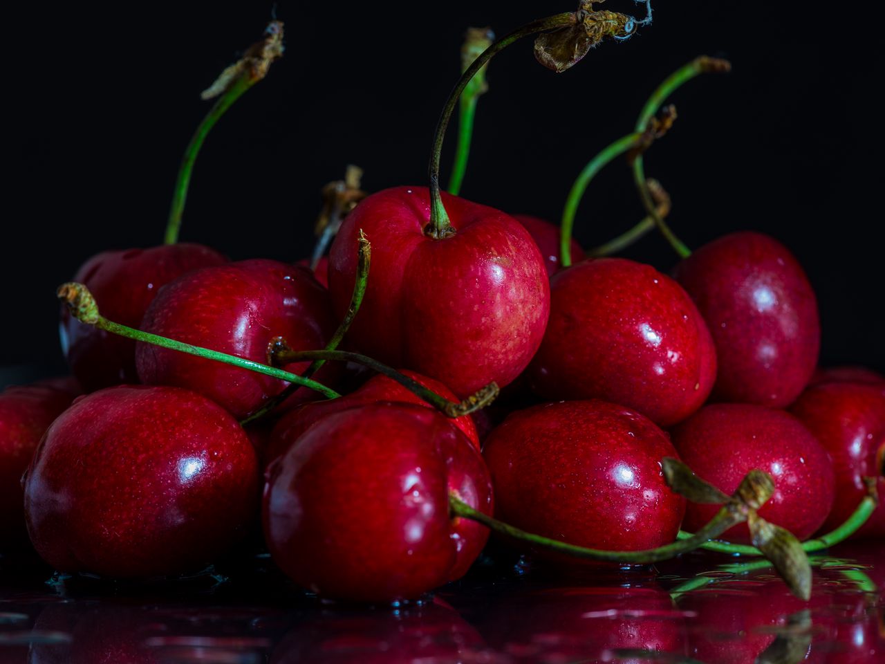 Download 1280x960 sweet cherry, ripe, wet, fruit, juicy, red, sweet wallpaper, background standard 4:3