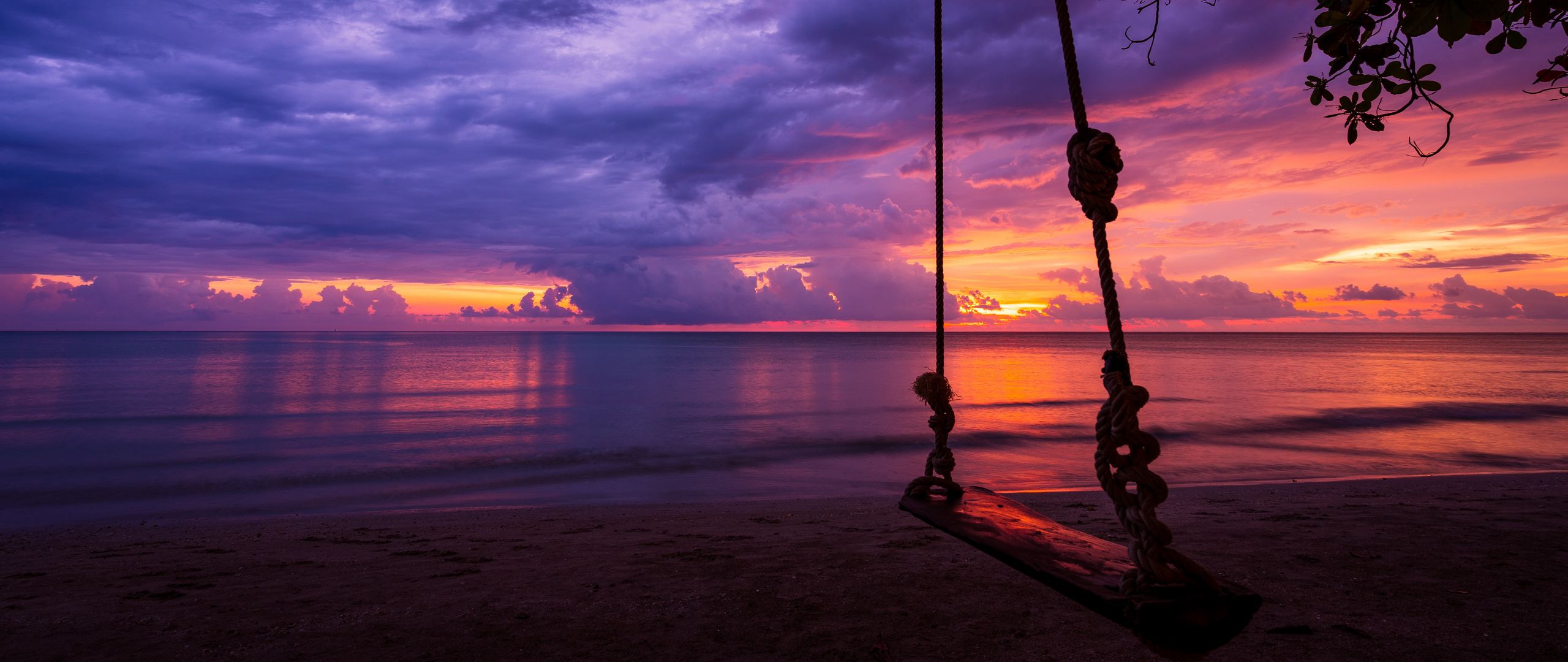 Download 2560x1080 swing, garland, beach, sunset wallpaper, background dual wide 1080p