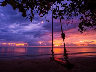 Download 320x240 swing, garland, beach, sunset wallpaper, background nokia e72, e71, asha, alcatel onetouch