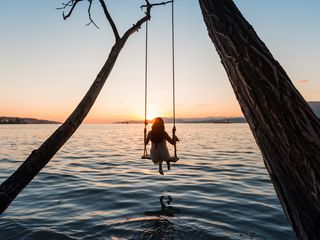 Download 320x240 swing, girl, sunset, lake, river wallpaper, background nokia e72, e71, asha, alcatel onetouch