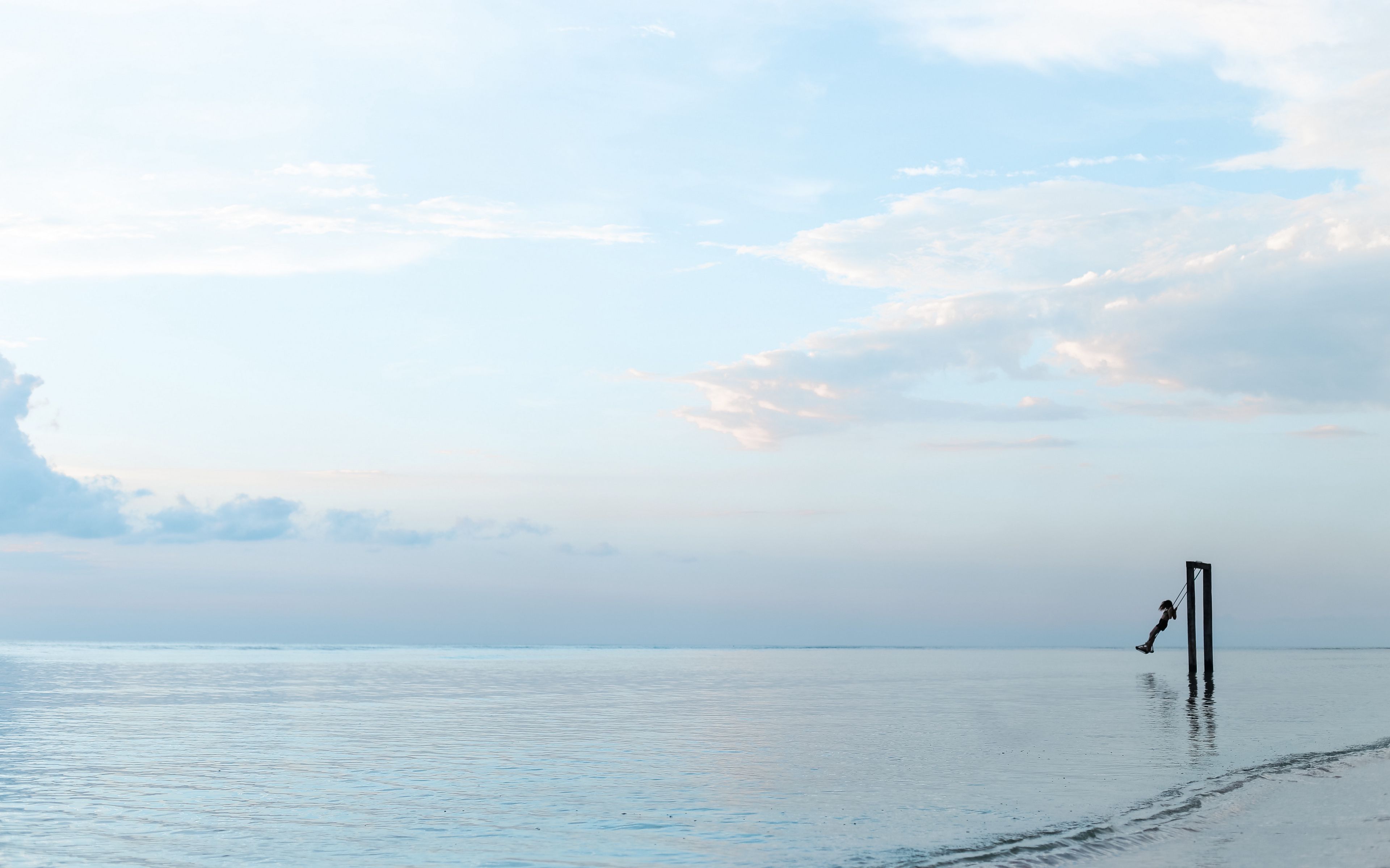 Download 3840x2400 swing, sea, horizon, minimalism wallpaper, background 4k ultra hd 16:10