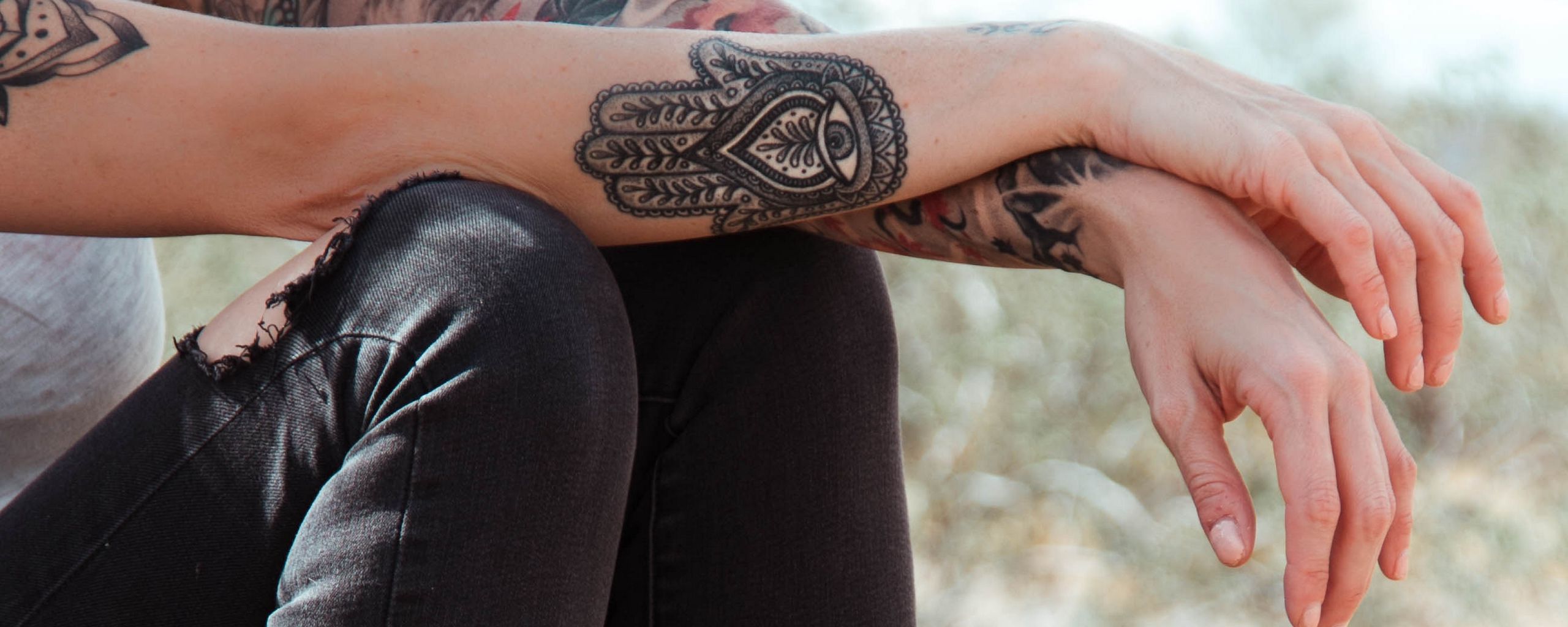 Download 2560x1024 tattoos, hands, legs, clothes, style wallpaper, background ultrawide monitor