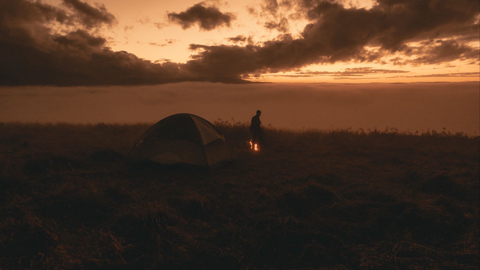 Download 1920x1080 tent, silhouette, campfire, dark, twilight wallpaper, background full hd, hdtv, fhd, 1080p