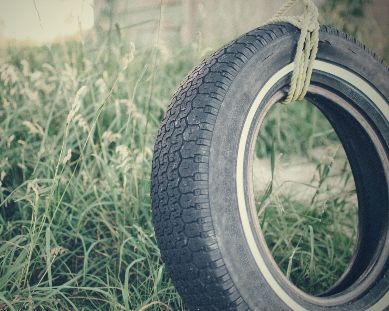 Download 1280x1024 tire, rope, grass wallpaper, background standard 5:4