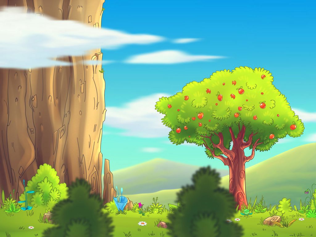 Download 1024x768 tree, landscape, art, apple, grass, hills, bushe wallpaper, background standard 4:3