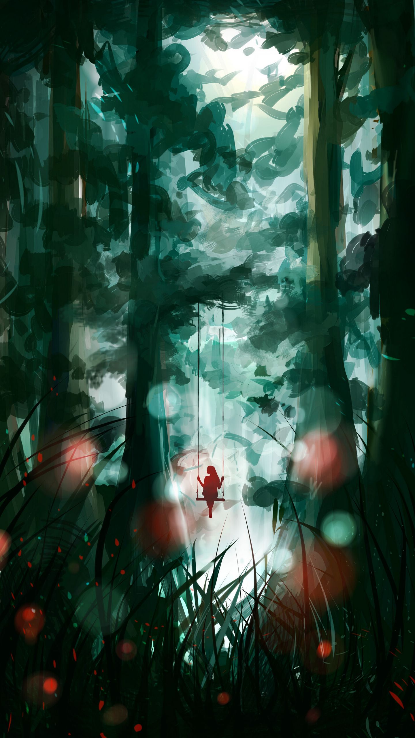 Download 1440x2560 trees, swing, silhouette, grass, glare, art wallpaper, background qhd samsung galaxy s6, s7, edge, note, lg g4