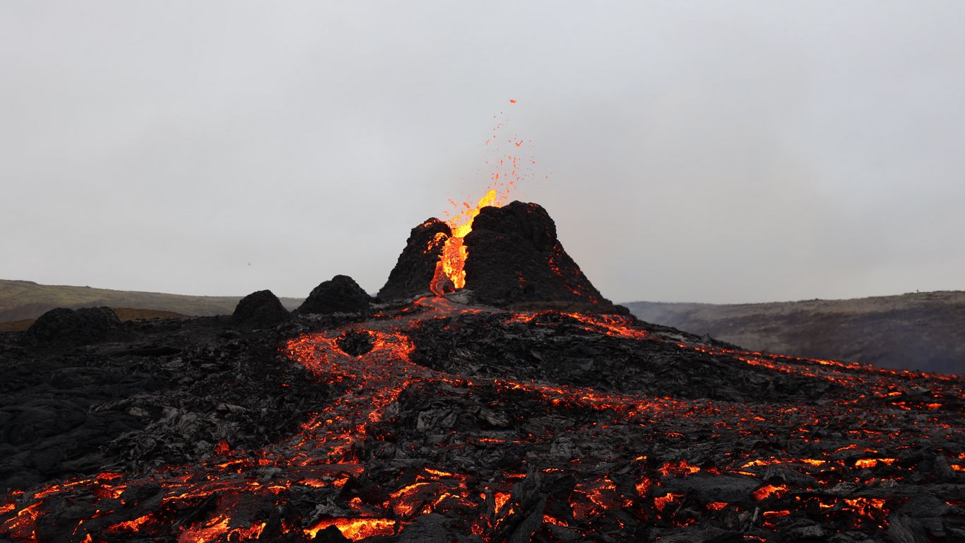 Download 1366x768 volcano, lava, eruption, spray, hot wallpaper, background tablet, laptop