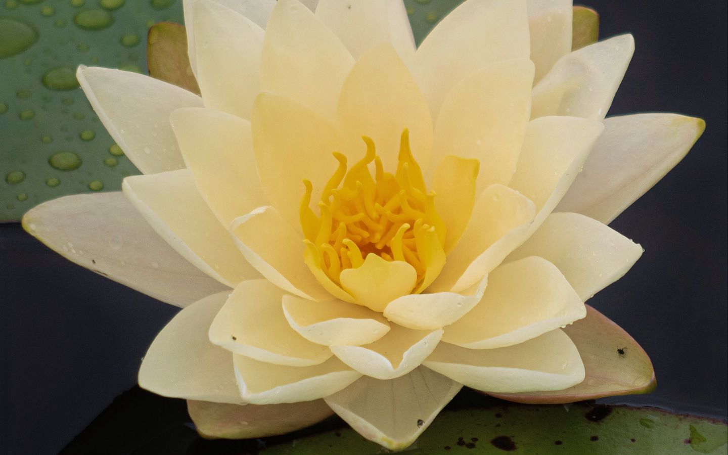 Download 1440x900 water lily, flower, petals, white, drops wallpaper, background widescreen 16:10