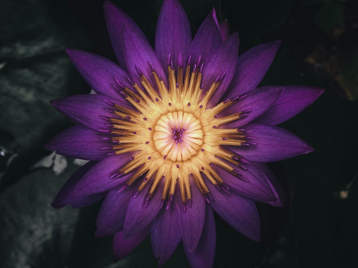 Download 1152x864 water lily, flower, plant, petals, purple, dark wallpaper, background standard 4:3