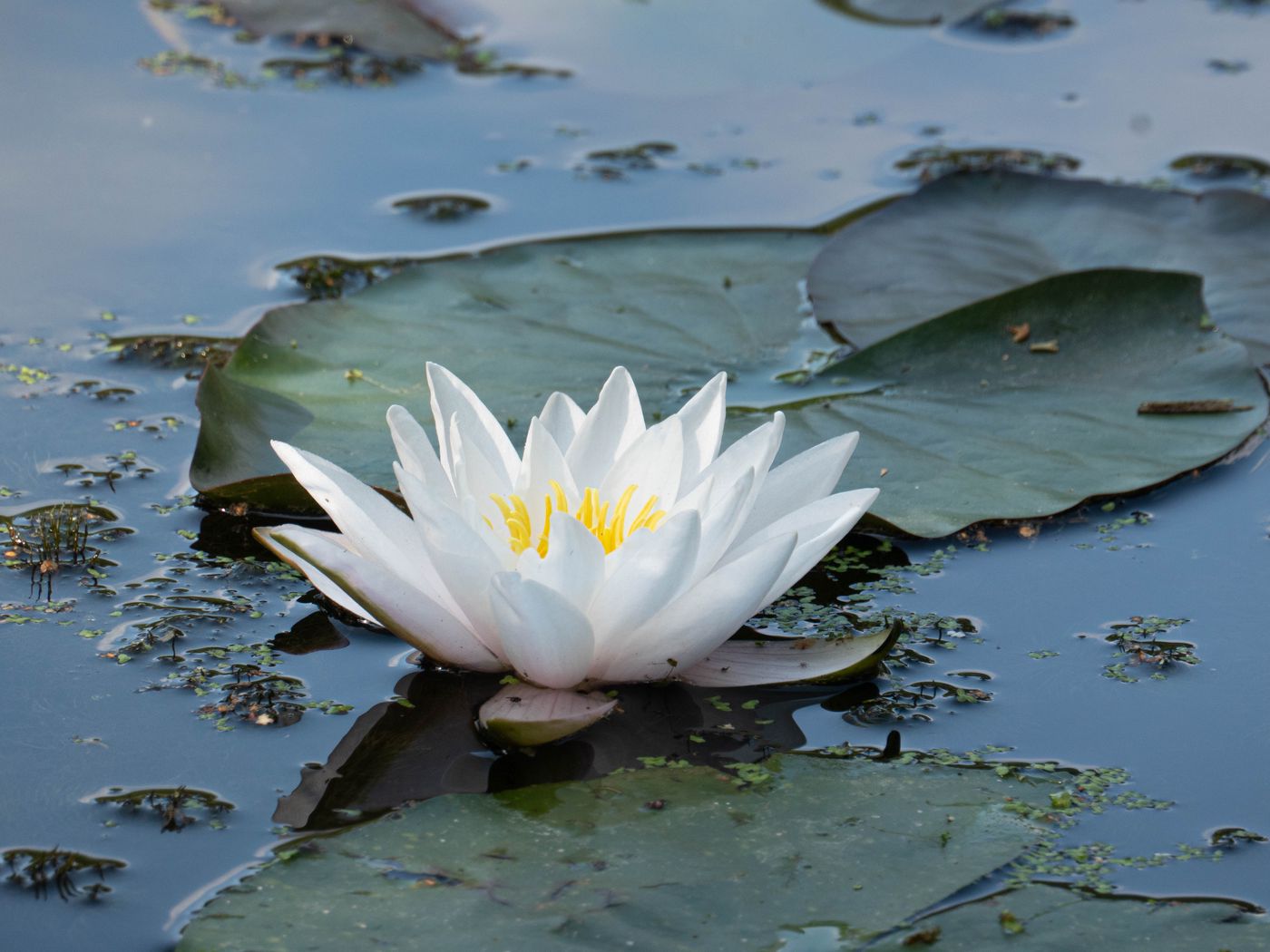 Download 1400x1050 water lily, flower, white, water, nature wallpaper, background standard 4:3