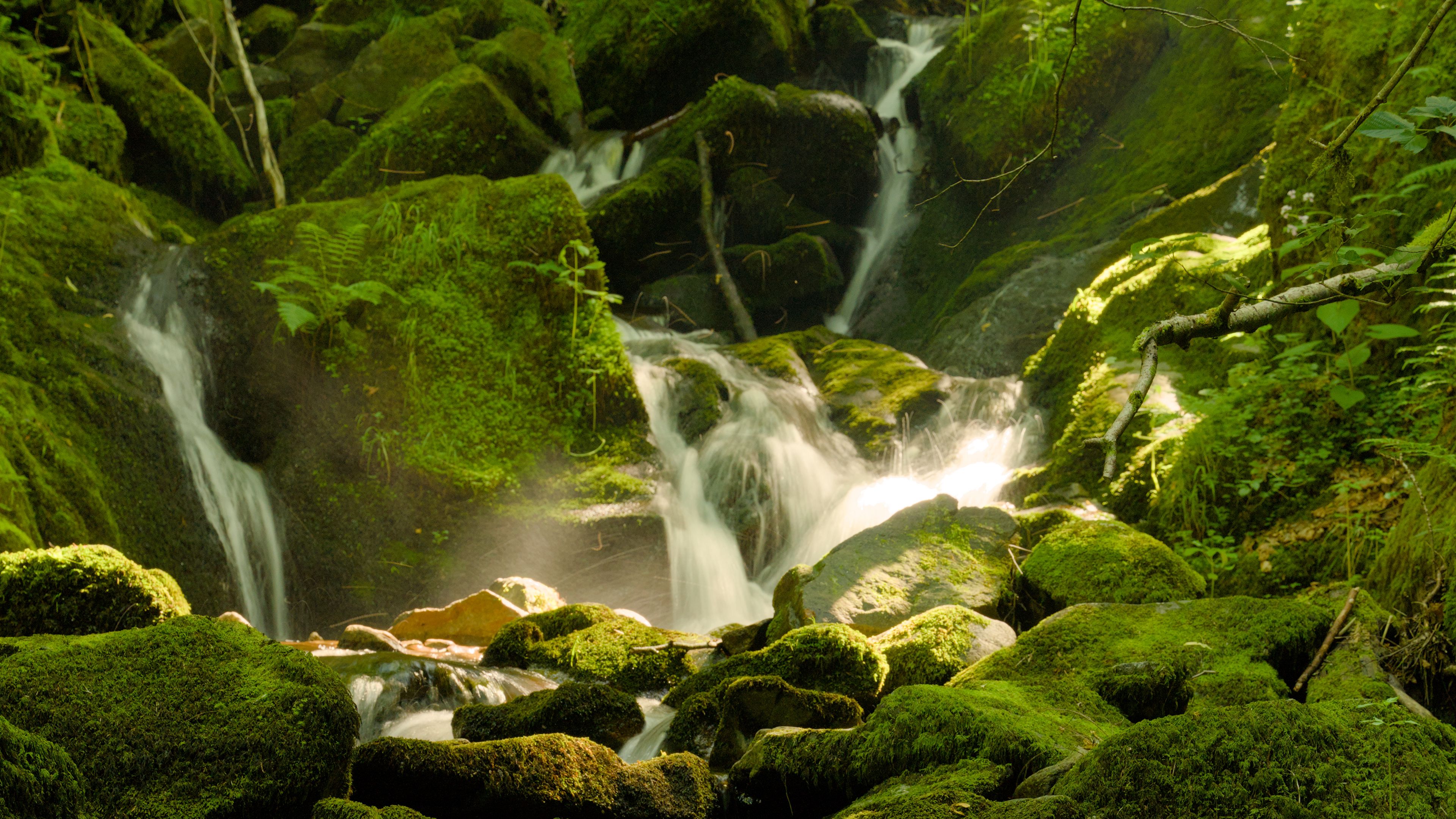 Download 3840x2160 waterfall, river, moss, stones, nature wallpaper, background 4k uhd 16:9