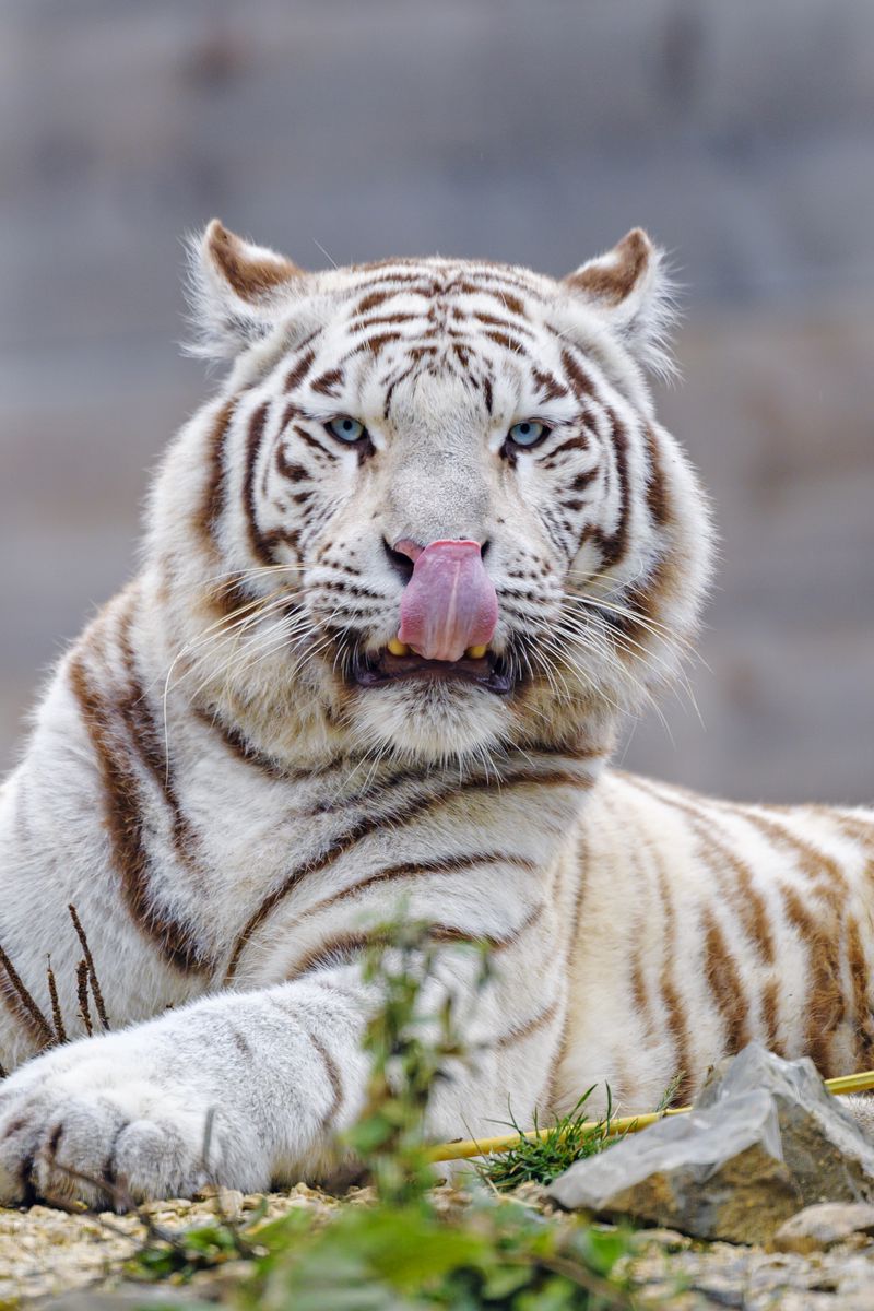 Download 800x1200 white tiger, tiger, protruding tongue, big cat, predator wallpaper, background iphone 4s/4 for parallax