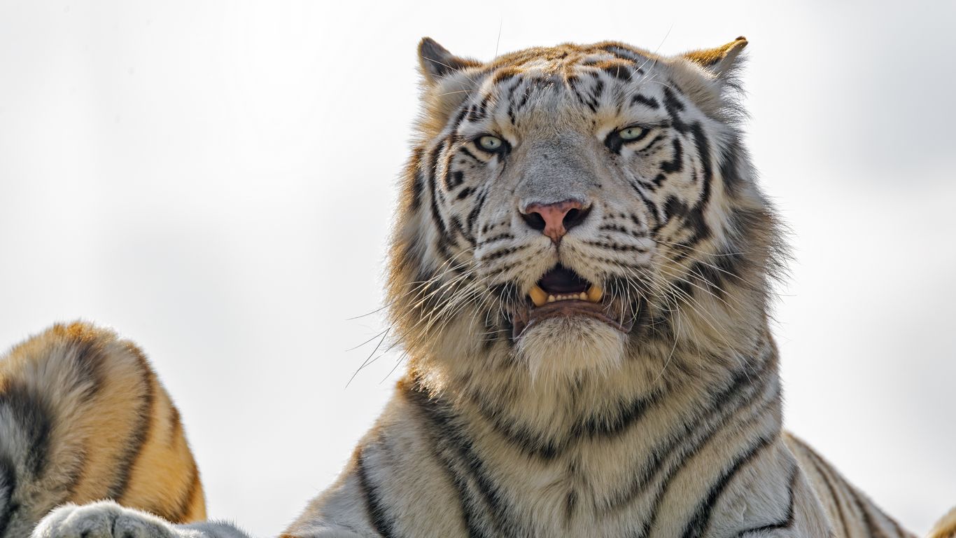 Download 1366x768 white tigress, white tiger, tiger, predator, big cat, striped wallpaper, background tablet, laptop