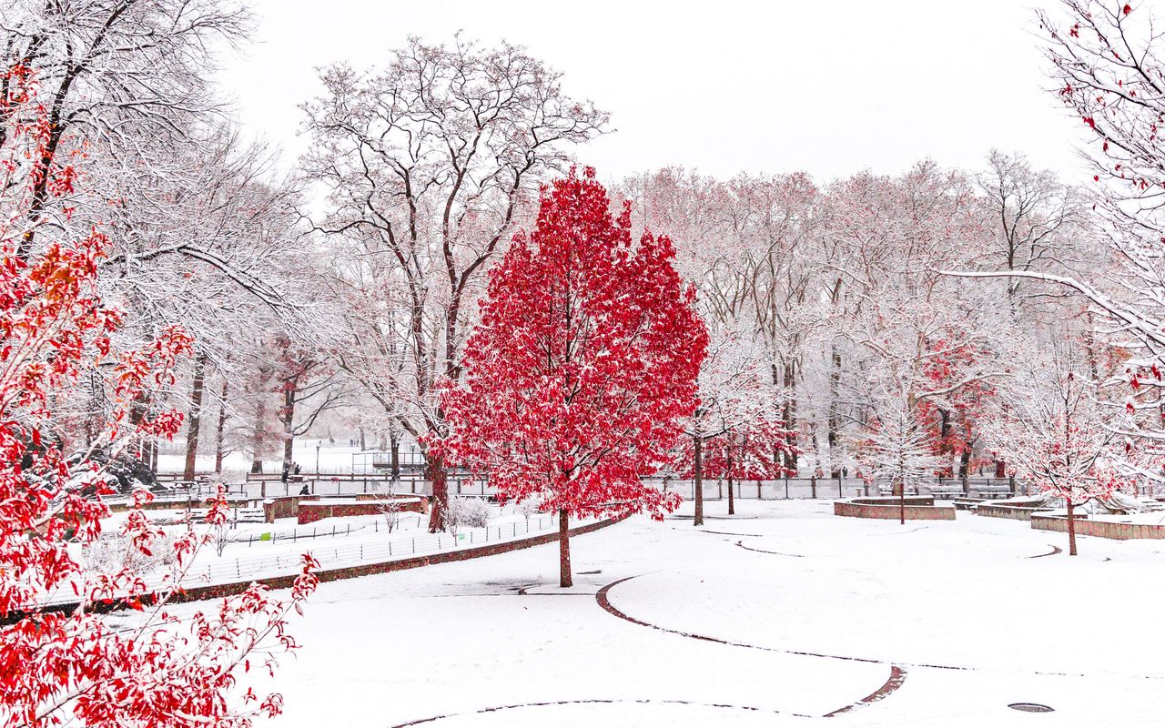 Download 1280x800 winter, trees, snow, park wallpaper, background widescreen 16:10