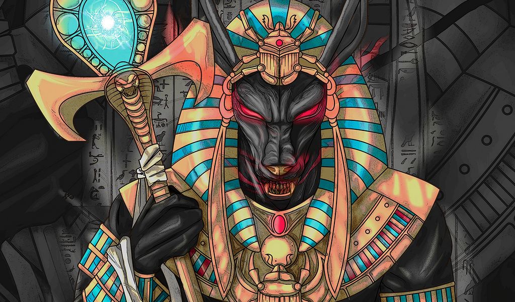 Download 1024x600 wolf, pharaoh, art, ancient egypt wallpaper, background netbook, tablet